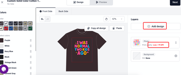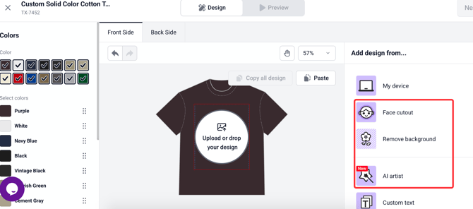 Upload your unique design, logo, or other images. You can add your design to the front, back, or both.
