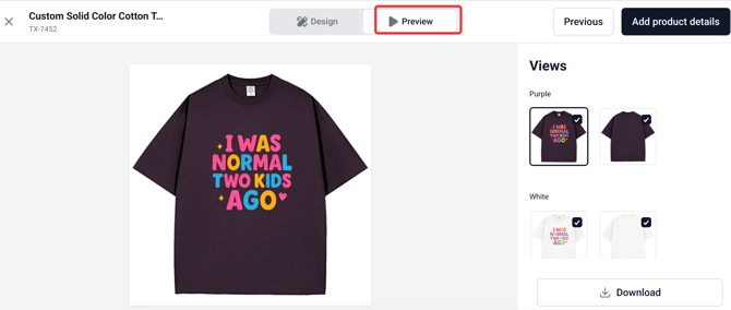 When you're satisfied, click Add Product Details. The system may take up to 90 seconds to complete the initial rendering.