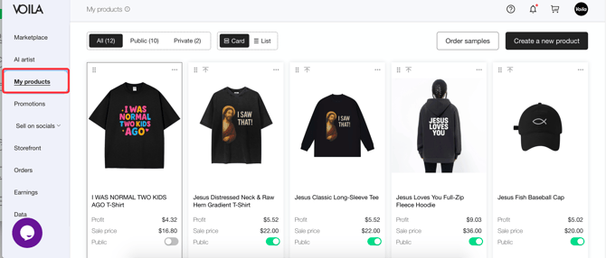 Click on My Products to see a list of all your products. You can toggle between list view and card view for easy browsing.