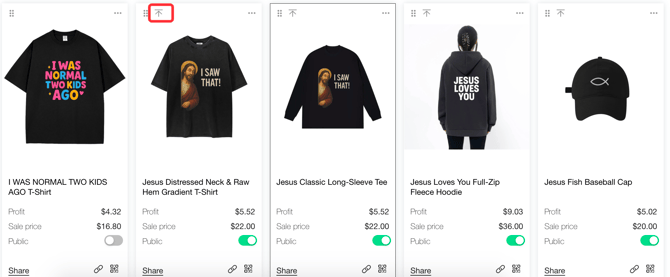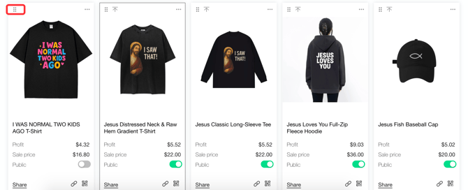 You can drag and drop products to reorder them, allowing you to display your preferred products at the top.