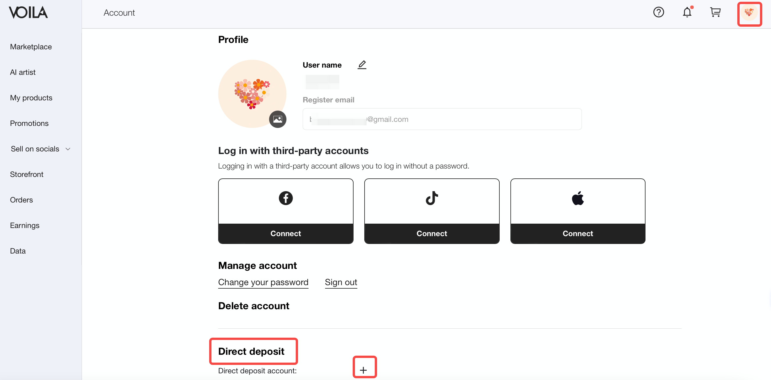 1.1 Go to your Personal center and add your bank account under Direct deposit.